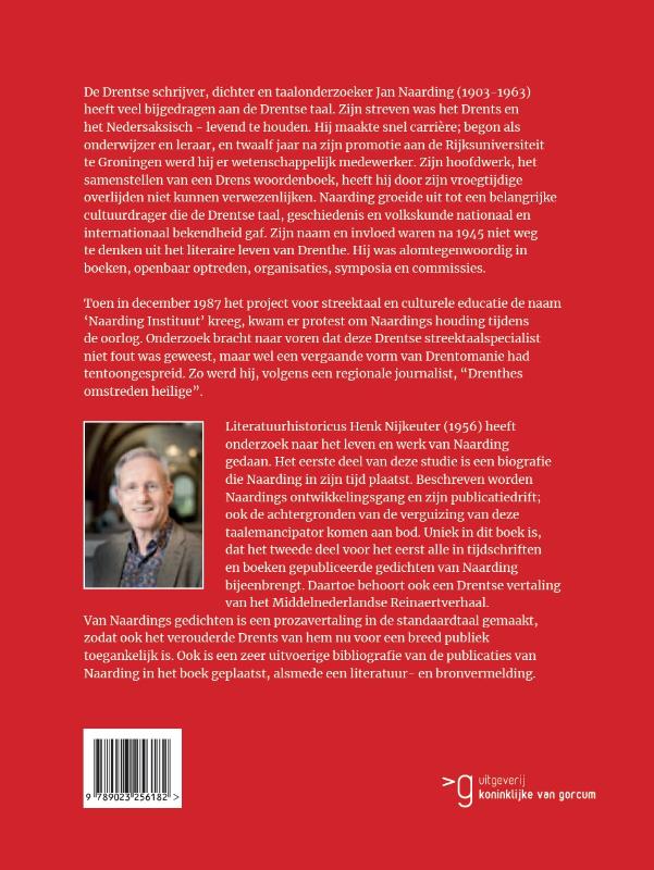 Literatuurhistoricus dr. Henk Nijkeuter (1956) deed onderzoek naar leven werk van Jan Naarding. Het eerste deel van deze studie is een biografie waarin Naarding midden in zijn tijd geplaatst wordt, in de samenleving en in de beweging waarvan hij deel uit maakte. Nijkeuter beschrijft de wordingsgang van Naarding, schetst de ware drijfveren van Naardings publicatiedrift en licht de achtergronden van de vergruising van deze taalemancipator toe. Uniek in dit boek is ook dat in het tweede deel voor het eerst alle in tijdschriften en boeken gepubliceerde gedichten van Naarding bijeengebracht zijn. Daartoe behoort ook een Drentse vertaling van het Middelnederlandse Reinaert-verhaal. Nijkeuter analyseert en verklaart in dit boek Naardings poëzie; hij vertaalde bovendien diens gedichten in de standaardtaal, zodat ook het archaïsche Drents van Naarding nu voor een breed toegankelijk is.