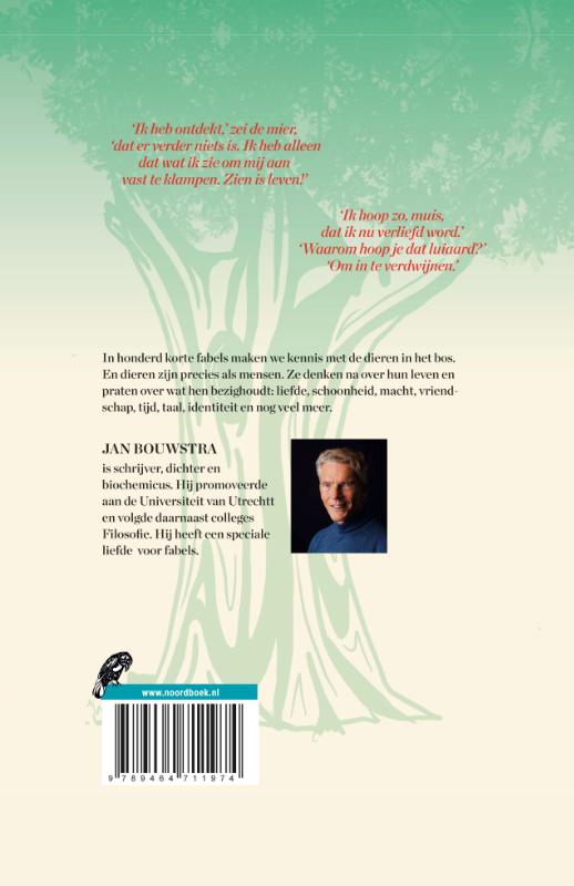In honderd korte fabels maken we kennis met de dieren in het bos. En dieren zijn precies als mensen. Ze denken na over hun leven en praten over wat hen bezighoudt: liefde, schoonheid, macht, vriendschap, identiteit en nog veel meer.