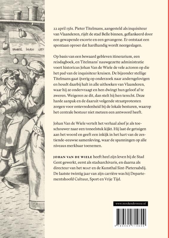 Op basis van een bewaard gebleven itinerarium, een reisdagboek, en Titelmans’ nauwgezette administratie voert historicus Johan Van de Wiele de vele actoren op die het pad van de inquisiteur kruisen. De bijzonder stellige Titelmans gaat ijverig op onderzoek naar andersgelovigen en houdt daarbij halt in alle uithoeken van Vlaanderen, waar hij ze ondervraagt en hen dwingt hun geloof af te zweren. Weigeren ze dit, dan stelt hij hen terecht. Deze harde aanpak en de daaruit volgende straatprotesten zorgen voor ontevredenheid bij de lokale besturen, waarop het centrale bestuur niet meteen een antwoord heeft.