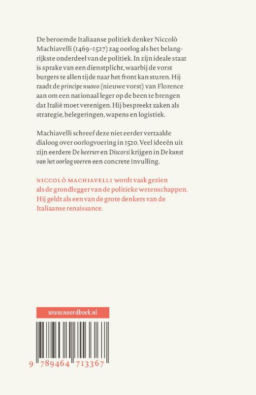 Machiavelli schreef deze niet eerder vertaalde dialoog over oorlogvoering in 1520. Veel ideeën uit zijn eerdere De heerser en Discorsi krijgen in De kunst van oorlogvoeren een concrete invulling.