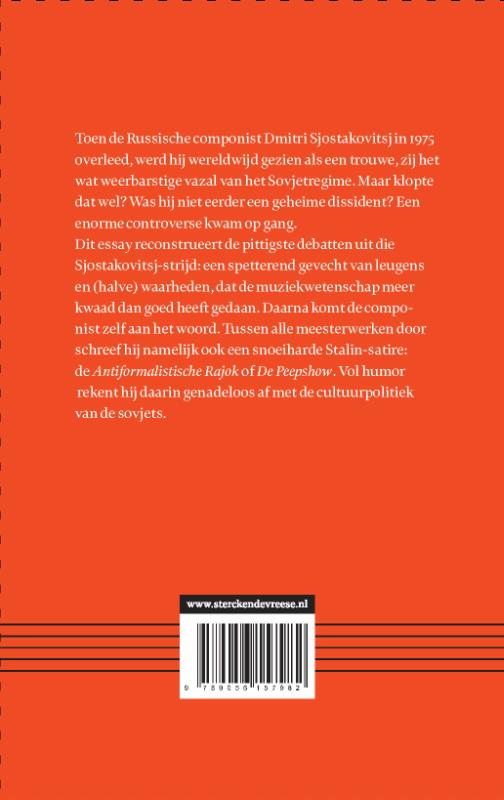 Toen de Russische componist Dmitri Sjostakovitsj in 1975 overleed, werd hij wereldwijd gezien als een trouwe, zij het wat weerbarstige vazal van het Sovjetregime. Maar klopte dat wel? Was hij niet eerder een geheime dissident? Een enorme controverse kwam op gang. Dit essay reconstrueert de pittigste debatten uit die Sjostakovitsj-strijd: een spetterend gevecht van leugens en (halve) waarheden, dat de muziekwetenschap meer kwaad dan goed heeft gedaan. Daarna komt de componist zelf aan het woord. Tussen alle meesterwerken door schreef hij namelijk ook een snoeiharde Stalin-satire: de Antiformalistische Rajok of De Peepshow. Vol humor rekent hij daarin genadeloos af met de cultuurpolitiek van de sovjets.