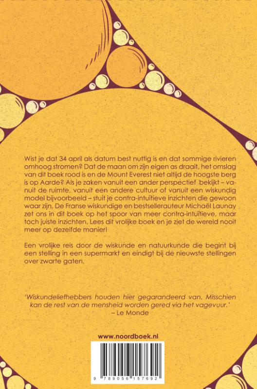 Wist je dat 34 april als datum best nuttig is en dat sommige rivieren omhoog stromen? Dat de maan om zijn eigen as draait, het omslag van dit boek rood is en de Mount Everest niet altijd de hoogste berg is op Aarde? Als je zaken vanuit een ander perspectief bekijkt – vanuit de ruimte, vanuit een andere cultuur of vanuit een wiskundig model bijvoorbeeld – stuit je contra-intuïtieve inzichten die gewoon waar zijn.