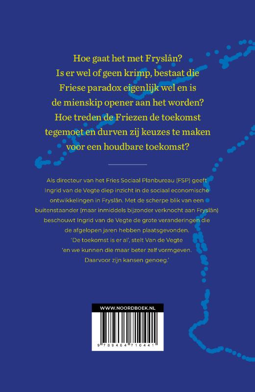 Als directeur van het Fries Sociaal Planbureau (FSP) geeft Ingrid van de Vegte diep inzicht in de sociaal economische ontwikkelingen in Fryslân. Met de scherpe blik van een buitenstaander (maar inmiddels bijzonder verknocht aan Fryslân) beschouwt Ingrid van de Vegte de grote veranderingen die de afgelopen jaren hebben plaatsgevonden. ‘De toekomst is er al’, stelt Van de Vegte ‘en we kunnen die maar beter zelf vormgeven. Daarvoor zijn kansen genoeg.’