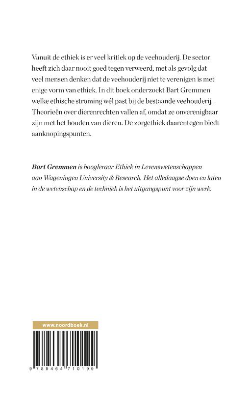 Vanuit de ethiek is er veel kritiek op de veehouderij. De sector heeft zich daar nooit goed tegen verweerd, met als gevolg dat veel mensen denken dat de veehouderij niet te verenigen is met enige vorm van ethiek. In dit boek onderzoekt Bart Gremmen welke ethische stroming wél past bij de bestaande veehouderij. Theorieën over dierenrechten vallen af, omdat ze onverenigbaar zijn met het houden van dieren. De zorgethiek daarentegen biedt aanknopingspunten.