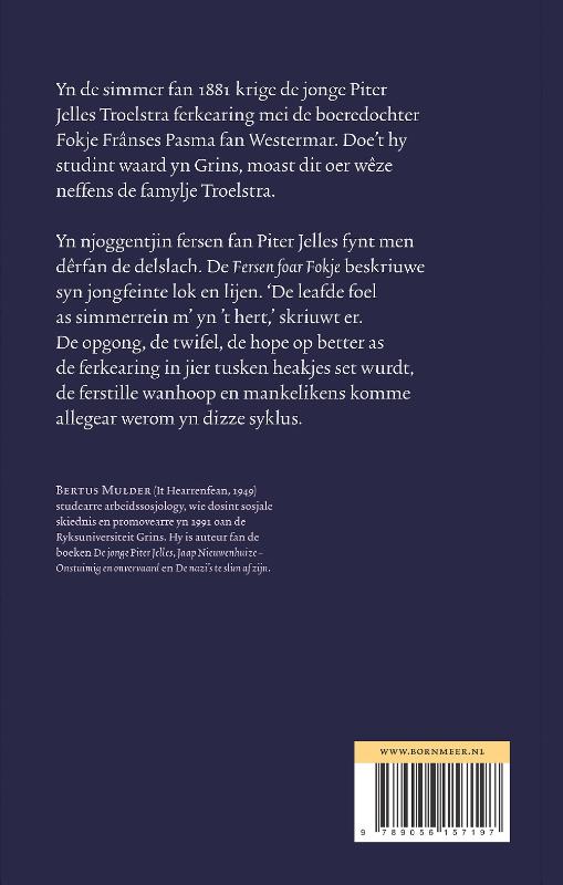 Yn njoggentjin fersen fan Piter Jelles fynt men dêrfan de delslach. De fersen foar Fokje beskriuwe syn jongfeinte lok en lijen. ‘De leafde foel as simmerrein m’yn ’t hert,’ skriuwt er. De opgong, de twifel, de hope op better as de ferkearing in jier tusken heakjes set wurdt, de ferstille wanhoop en mankelikens komme allegear werom yn dizze syklus.