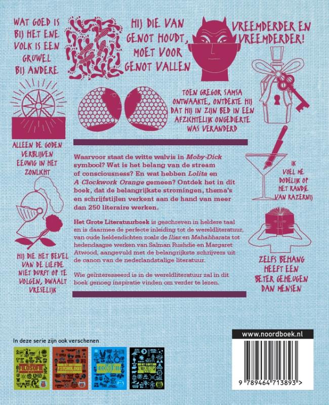Dit rijk geïllustreerde boek bevat meer dan honderd baanbrekende ideeën over grote literaire werken. Ze worden toegelicht aan de hand van auteursbiografieën, kernconcepten, tijdlijnen, portretten, mindmaps en andere afbeeldingen.