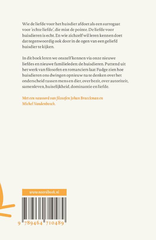 In dit boek leren we onszelf kennen via onze nieuwe liefdes en nieuwe familieleden: de huisdieren. Puttend uit het werk van filosofen en romanciers laat Fudge zien hoe huisdieren ons dwingen opnieuw na te denken over het onderscheid tussen mens en dier, over bezit, over autoriteit, samenleven, huiselijkheid, dominantie en liefde.