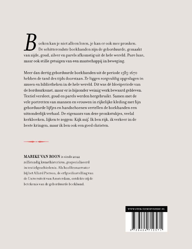 Textiel versleet, goud en parels werden hergebruikt. Samen met de vele portretten van mannen en vrouwen in rijkelijke kleding met fijn geborduurde lijfjes en handschoenen vertellen de boekbanden een uitzonderlijk verhaal. De eigenaars van deze pronkstukjes, veelal kerkboeken, lijken te zeggen: Kijk mij! Ik ben rijk, ik verkeer in de beste kringen, maar ik ben ook een goed christen.