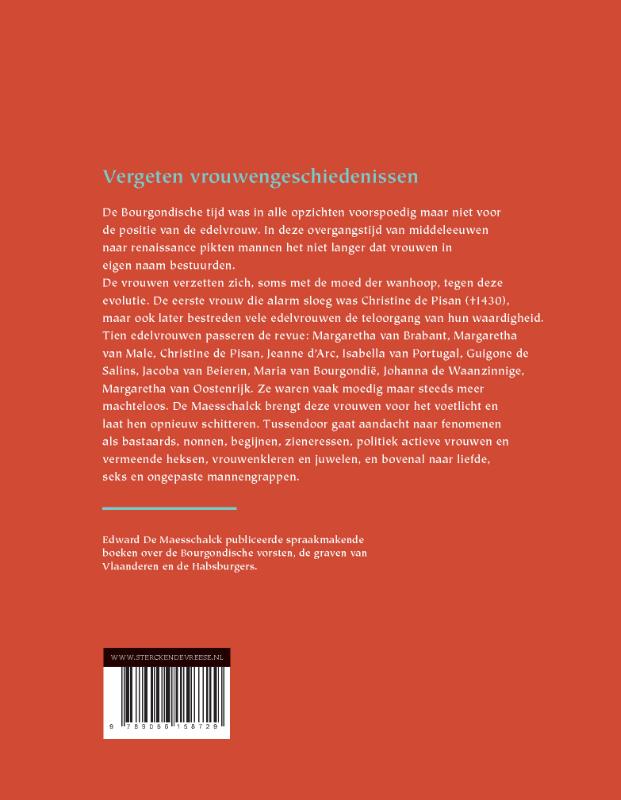 De Bourgondische tijd was in alle opzichten voorspoedig maar niet voor de positie van de edelvrouw. In deze overgangstijd van middeleeuwen naar renaissance pikten mannen het niet langer dat vrouwen in eigen naam bestuurden. De vrouwen verzetten zich, soms met de moed der wanhoop, tegen deze evolutie. De eerste vrouw die alarm sloeg was Christine de Pisan (†1430), maar ook later bestreden vele edelvrouwen de teloorgang van hun waardigheid. Tien edelvrouwen passeren de revue: Margaretha van Brabant, Margaretha van Male, Christine de Pisan, Jeanne d’Arc, Isabella van Portugal, Guigone de Salins, Jacoba van Beieren, Maria van Bourgondië, Johanna de Waanzinnige, Margaretha van Oostenrijk. Ze waren vaak moedig maar steeds meer machteloos. De Maesschalck brengt deze vrouwen voor het voetlicht en laat hen opnieuw schitteren. Tussendoor gaat aandacht naar fenomenen als bastaards, nonnen, begijnen, zieneressen, politiek actieve vrouwen en vermeende heksen, vrouwenkleren en juwelen, en bovenal naar liefde, seks en ongepaste mannengrappen.