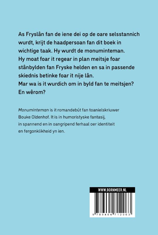 Monuminteman is it romandebút fan toanielskriuwer Bouke Oldenhof. It is in humoristyske fantasij, in spannend en in oangripend ferhaal oer identiteit en fergonklikheid yn ien.