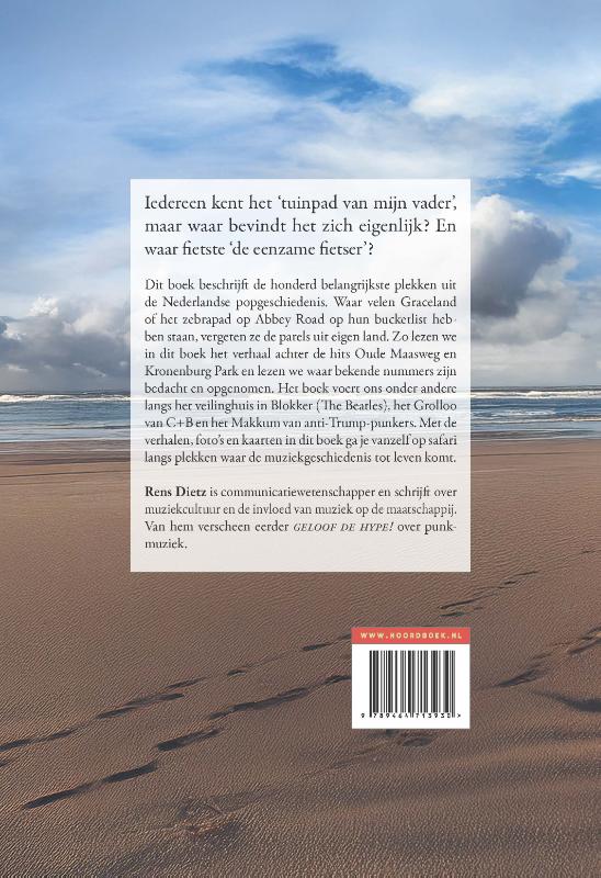 Dit boek beschrijft de honderd belangrijkste plekken uit de Nederlandse popgeschiedenis. Waar velen Graceland of het zebrapad op Abbey Road op hun bucketlist hebben staan, vergeten ze de parels uit hun eigen land. Zo lezen we in dit boek het verhaal achter de hits Oude Maasweg en Kronenburg Park en lezen we waar bekende nummers zijn bedacht en opgenomen. Het boek voert ons onder andere langt het veilinghuis in Blokker (The Beatles). Het Grolloo van C+B en het Makkum van anti-Trump-punkers. Met de verhalen, foto’s en kaarten in dit boek ga je vanzelf op safari langs plekken waar de muziekgeschiedenis tot leven komt.
