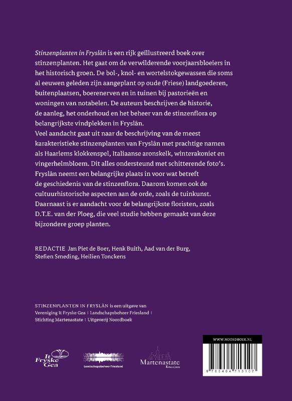 STINZENPLANTEN IN FRYSLÂN is een uitgave van Vereniging It Fryske Gea | Landschapsbeheer Friesland | Stichting Martenastate | Uitgeverij Noordboek