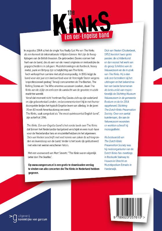The Kinks. Een oer-Engelse band is het eerste boek over The Kinks dat binnen het Nederlandse taalgebied verschijnt en een must-have voor de Nederlandse fans en muziekliefhebbers in het algemeen. Dick van Veelen beschrijft met veel kennis van zaken de achtergronden en levensloop van de band. Verder is het boek rijk geïllustreerd met vele niet eerder verschenen foto’s.