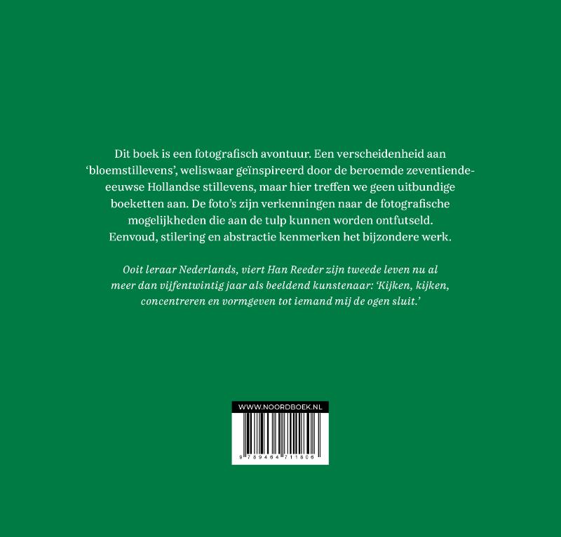 Dit boek is een fotografisch avontuur. Een verscheidenheid aan ‘bloemstillevens’, weliswaar geïnspireerd door de beroemde zeventiende-eeuwse Hollandse stillevens, maar hier treffen we geen uitbundige boeketten aan. De foto’s zijn verkenningen naar de fotografische mogelijkheden die aan de tulp kunnen worden ontfutseld. Eenvoud, stilering en abstractie kenmerken het bijzondere werk.