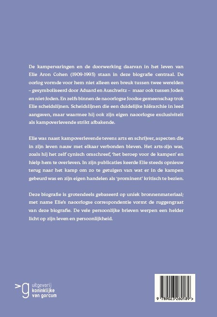 De kampervaringen en de doorwerking daarvan in het leven van Elie Aron Cohen (1909-1993) staan in deze biografie centraal. De oorlog vormde voor hem niet alleen een breuk tussen twee werelden – gesymboliseerd door Aduard en Auschwitz – maar ook tussen Joden en niet-Joden. En zelfs binnen de naoorlogse Joodse gemeenschap trok Elie scheidslijnen. Scheidslijnen die een duidelijke hiërarchie in leed aangaven, maar waarmee hij ook zijn eigen naoorlogse exclusiviteit als kampoverlevende strikt afbakende.