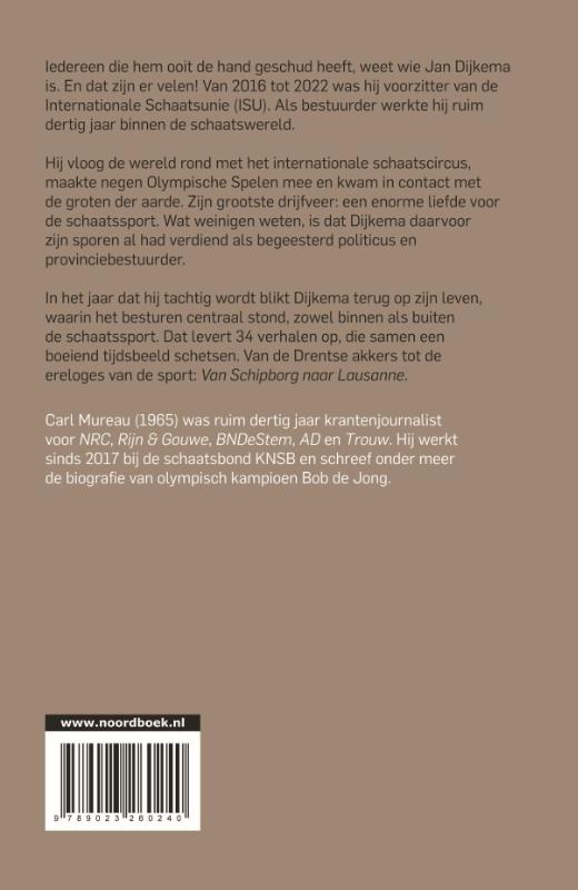 In het jaar dat hij tachtig wordt blikt Dijkema terug op zijn leven, waarin het besturen centraal stond, zowel binnen als buiten de schaatssport. Dat levert 34 verhalen op, die samen een boeiend tijdsbeeld schetsen. Van de Drentse akkers tot de ereloges van de sport: Van Schipborg naar Lausanne.